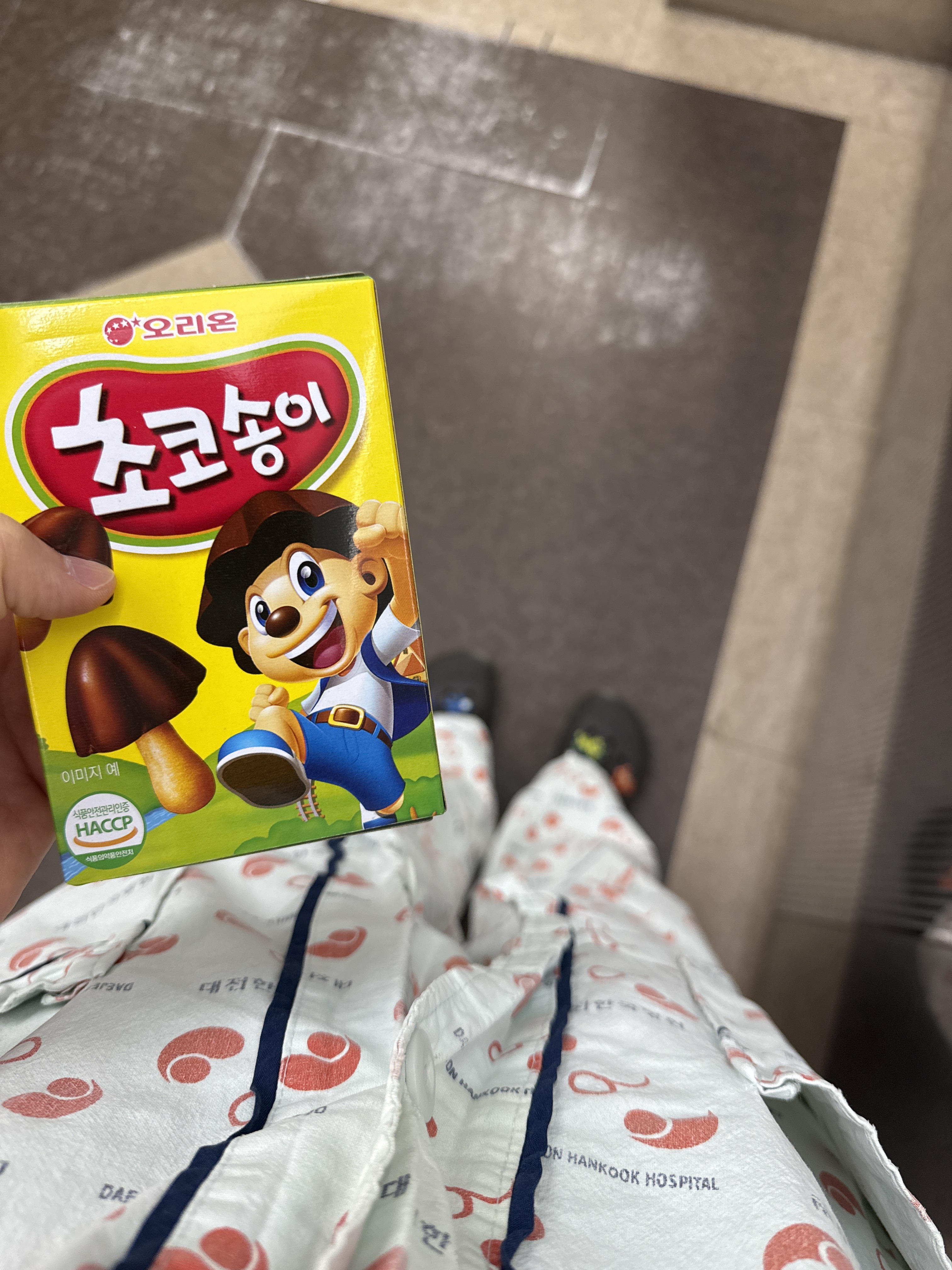 좋아하는 초코송이 과자 하나로 버텼습니다.. 밤 12시부터 금식이었거든여..